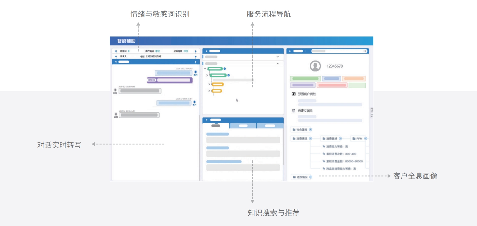 智能辅助可以作为受理系统的辅助工具,,,,,,基于AI手艺针对性提升人工效劳效率和质量。。。。。。。配有实时对话转译,,,,,,依托智能引 擎和一直深化的词汇标注,,,,,,精准掷中客户意图。。。。。。。对坐席举行全程知识推荐、话术效劳指引,,,,,,并且可以提供情绪识别、敏感 词监测等功效,,,,,,包管效劳规范和效劳质量。。。。。。。