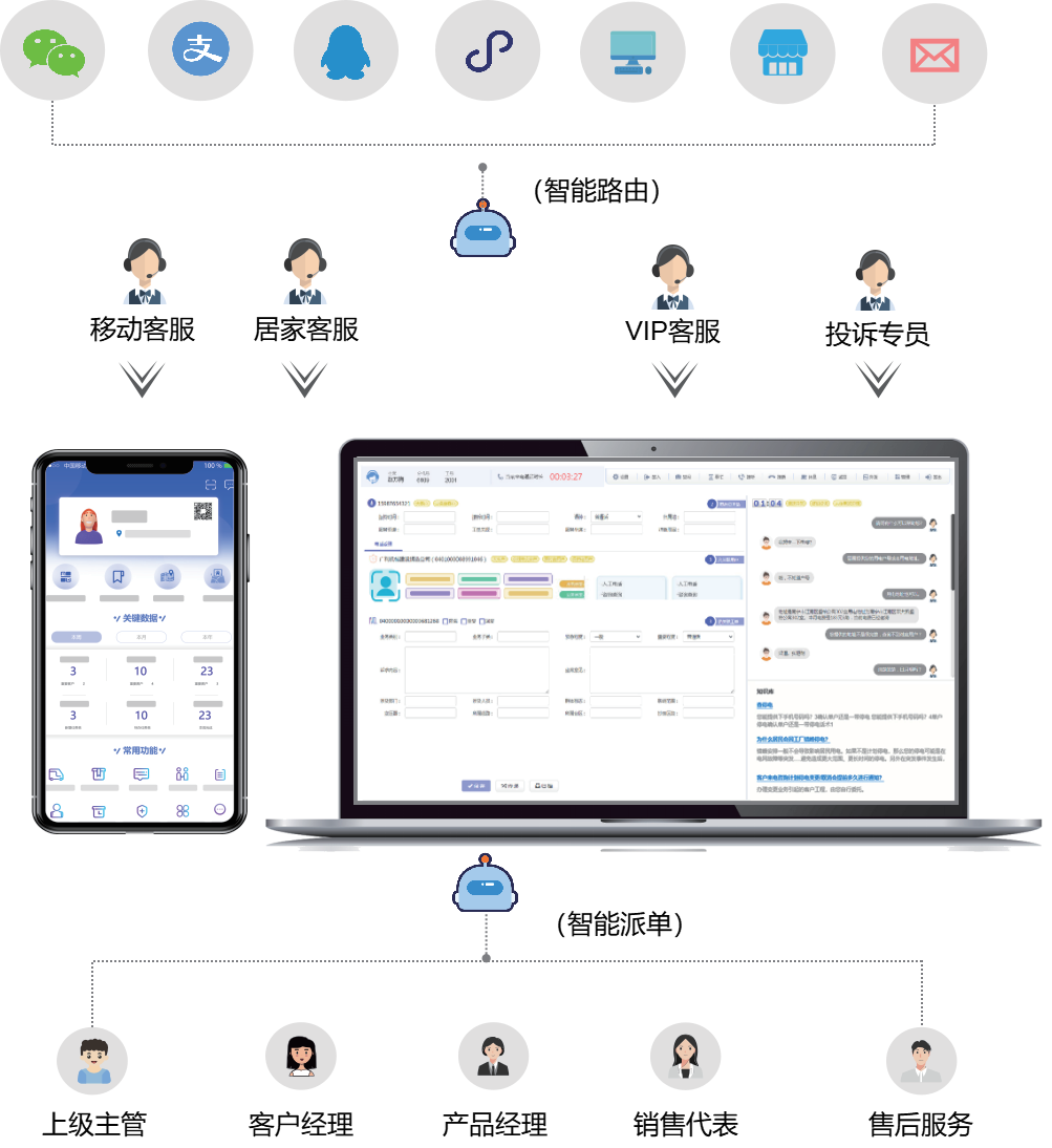 • 支持效劳热线、微信公众号、小程序、网站等多个渠道 接入。。。。。