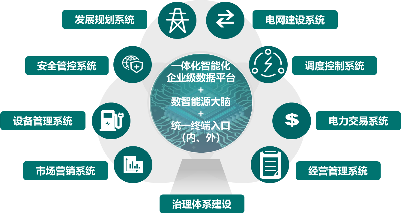 凭证公司数字化转型及新型电力系统总体要求,,,,“打造数智大脑+健全营业四肢(生产治理、市场营销、调理控制、谋划治理)+配套治理躯干”,,,,周全推进跨部分、跨层级、跨行业的营业融通、数据意会,,,,形成统一的能源智能决议中心。。。。。。